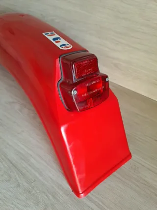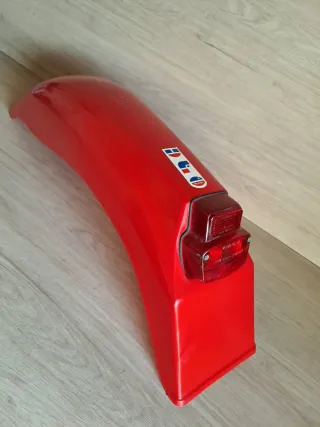 Guardabarros trasero con piloto, de la marca UFO, para moto enduro clásico. - Color rojo, nuevo de antiguo stock. Tiene algunas pequeñas marcas de almacenaje. Palabras clave enduro, cross, moto clásica...etc