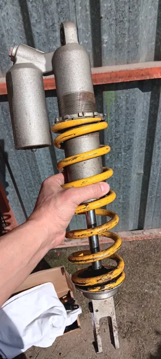 Amortiguador para Honda CR del año 2001. Pieza de repuesto. - Color amarillo del muelle. - Cuerpo metálico plateado.