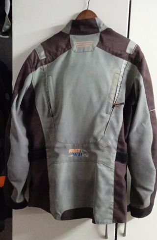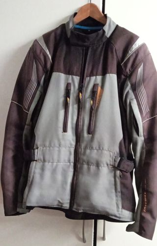 Chaqueta de entretiempo-verano (sin forro térmico interior), de cordura para moto, talla XL, diseñada para hombre. Ideal para tus rutas. No impermeable. Con protecciones blandas en hombros, codos y espalda. - Color marrón y gris. - Cierre de cremallera frontal. - Múltiples bolsillos con cremallera.