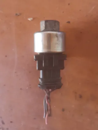 Sensor de presión de aire acondicionado para Volkswagen T4. Pieza de repuesto. - Conector de plástico negro. - Cuerpo metálico plateado. - Cables de conexión.