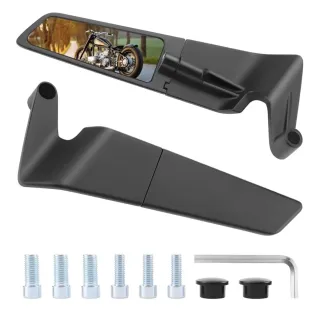 Par de espejos retrovisores negros para moto. - Diseño elegante y funcional. - Compatibles con manillares de moto.