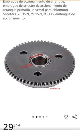 Embrague de arranque primario universal para ciclomotor y scooter. - Compatible con modelos GY6 152QMI y 157QMJ. - Diseño de arrastre para un acoplamiento suave.