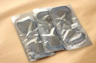 Pack de pegatinas de repuesto para mini masajeador. Son de forma ovalada y tienen un diseño con líneas azules.