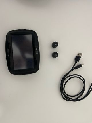 Navegador GPS Garmin Zumo 395 con mapas de Europa. Tapones para marcar presion de neumaticos - Pantalla táctil. - Mapas de Europa actualizados de por vida.Tiene el boton de encendido un poco roto pero no afecta a su uso