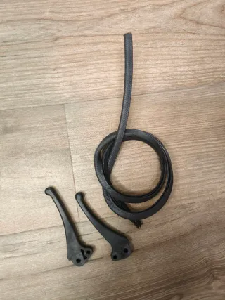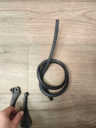 Par de manetas de freno negras para Vespa pks, originales de 1986, y regalo bordon se goma flexible. - Material: Plástico. - Color: Negro. - Incluye goma de protección.