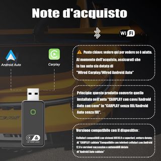 CarPlay ios & Adaptador [2-en-1], adaptador Convierte Wired a SS para coche con función Carplay o Android Auto (negro brillante, 0,4 pulgadas) NUEVO, SIN ESTRENAR