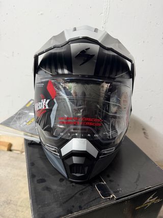 Casco Scorpion ADX con diseño moderno y detalles en gris - Visera integrada. - Interior cómodo. - Cierre de seguridad. - Usado en contadas ocasiones - Talla M - Forro interior a parte en talla S