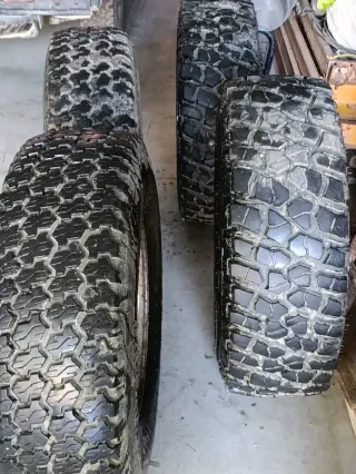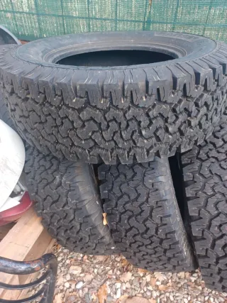 Se venden 5 Neumáticos BF Goodrich Mud Terrain T/A. Medidas 215/75/15 - Diseño agresivo para máximo agarre. - Ideales para terrenos difíciles. -Usados pero con bastante taco aún -Se venden solo neumáticos sin llantas Estaban montados en un Suzuki jimny pero son apropiados para vitara, samurai, etc. Campo, todoterreno, 4x4, offroad, overland, camper, camperizacion, sport, mud terrain, all terrain, bfgoodrich, Cooper discover, maxxis, trepador, etc