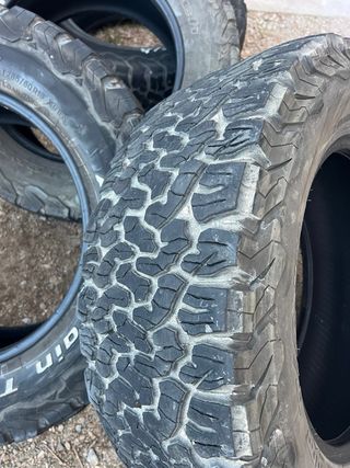 Juego de 4 ruedas BFGoodrich T/A para 4x4 en buen estado y con medio uso. - Medida: LT285/60R18 - Marca: BFGoodrich - Modelo: All-Terrain T/A KO2