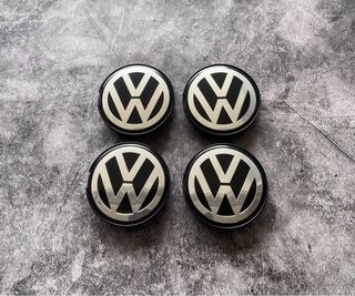 Set de 4 tapones para llantas de Volkswagen. Estos tapones cuentan con el logo de la marca. - Logo de Volkswagen grabado. - Diseño circular con detalles. - Color negro.