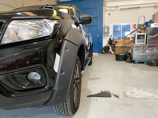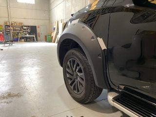 Juego de molduras para los pasos de rueda de Nissan Navara NP300. - Fabricadas en plástico negro. - Diseño robusto y a medida.
