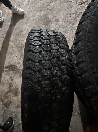 Neumático usado para Nissan Patrol o Terrano. Está algo desgastada, pero en buen estado general. - Llanta de acero. - Neumático con dibujo todoterreno.