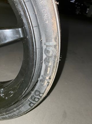 Rueda de repuesto tipo galleta de 17 pulgadas. Para comprat - Llanta de aleación plateada. - Neumático en buen estado.