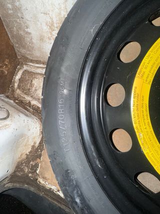 Rueda de repuesto para coche. - Medida: 125/80 R17. - Índice de carga: 99. - Código de velocidad: M. - Tipo: Tubeless.