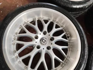 Juego de llantas HRE de doble medida válidas para BMW serie 5 E39, se venden por despiece del coche más piezas consultar 2 de 8J y 2 traseras de 9J Neumáticos delanteros 235/40/18 y traseras 265/35/18 Doble medida, llantas con garganta - Compatibles con BMW E39. Tornillería 5x120 et36 Llanta aluminio ruedas NO ENVÍO Solo venta, no cambios E39 e46