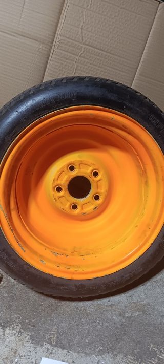 Neumático de repuesto para coche. Está en buen estado. - Para uso temporal. - Velocidad máxima: 80 km/h. - Diámetro: 50 cm aproximadamente.