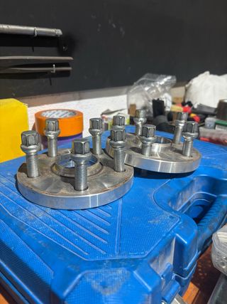 Se venden dos separadores de rueda con sus tornillos. Mercedes ...buje 66.5 - Diámetro de los separadores: 5x112. - Material: Aluminio. - Incluye 10 tornillos.