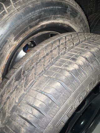 Llanta de acero con neumático para furgoneta, Camper, autocaravana, caravana, etc en buen estado (nunca se usó). Neumático: - Llanta de acero de 14 pulgadas. - 5 1/2Jx14H2 - Medida 195R14C. - Modelo UE-168. Se entrega tal cual se ve en las fotos. Entrega en mano en Lugo y Compostela.