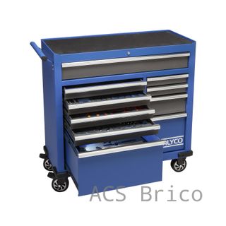 CARRO METÁLICO DE 10 CAJONES 177 PIEZAS ALYCO 192679 DESCRIPCION: Robusto y resistente a los golpes. Carro de estructura reforzada, con largueros y protecciones anti golpe en las esquinas. Gran capacidad y peso soportable. Alta capacidad de carga (total 400 kg., cajones pequeños 20 kg., cajones grandes 30 kg.). Gran maniobrabilidad, por sus ruedas anchas y su gran asa. Comodidad de transporte y estabilidad cuando esta frenado. Perfecta apertura de cajones y cerradura que permite una seguridad de custodia de las herramientas. Surtido muy completo de 177 herramientas Alyco distribuidas en 9 módulos diferentes para una perfecta o...