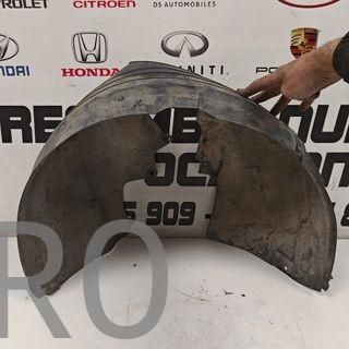 Paso de rueda delantero derecho de un vehículo. - Pieza de plástico. - Se sujeta con tornillos.