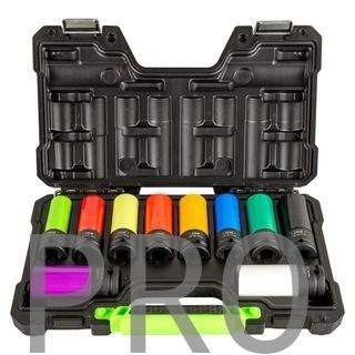 Material: Chrome Molybdenum (CR-MO) Incluye: - 7 vasos de 1/2" hexagonales de 15, 17, 19, 21, 22, 23 y 24mm - 1 vaso de 7/8" especial Tesla - 1 vaso de 17mm especial Mercedes - 1 vaso de 21mm especial Hyundai/Kia Vasos de 85mm de largo