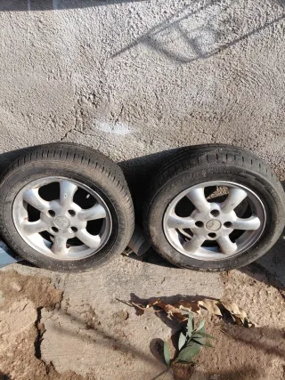Juego de cuatro ruedas para Peugeot 206. - Llantas de aleación. - Neumáticos en buen estado.