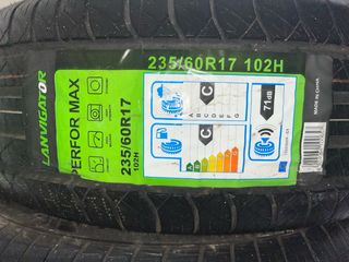 Juego de dos neumáticos marca LANVIGATOR, modelo PERFOR MAX. sin usar - Medida: 235/60R17 102H. - Clasificación de eficiencia de combustible: C. - Clasificación de agarre en mojado: C. - Nivel de ruido exterior: 71 dB. - Fabricado en China.