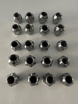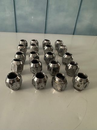 Juego de 20 de tuercas para Suzuki Vitara.Pongo que estan en condiciones aceptables por el aspecto,tienen uso pero cumplen perfectamente su funcion,Nuevas valen 60€,Son de metal y tienen un acabado plateado.Acepto cambio,intercambio,envio. - Material: Metal - Color: Plateado - Compatibilidad: Suzuki Vitara