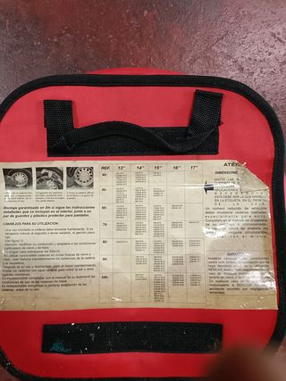 2 fundas para las ruedas delanteras en caso de nieve o hielo. Ver medidas en la segunda foto. Nuevas a estrenar en su funda. Ultima foto como quedan.