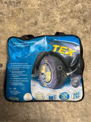 Fundas textiles antideslizantes para ruedas de coche, marca FIX&GOTEX. - Diseñadas para su uso sobre superficies con nieve. - Fabricadas en textil. - Peso neto: 0.72 Kgs. - Peso bruto: 0.88 Kgs.