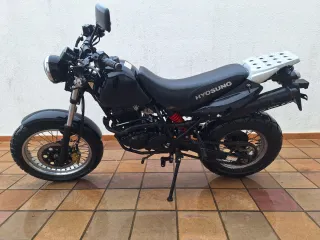 Moto Hyosung Carion RT 125 en color negro.no tiene documentación de hay su precio esta dada de baja total sin posibilidad de reavilitar ideal para recambio de otra o donante o recinto cerrado lleva tiempo parada hay que limpiar carburador pero funcina perfectamente posibilidad de tramporte a toda España por 120 euros para mas información llamar al 695101566 no es negociable y no acepto cambios para mas info llamar - Estilo Enduro. - Ruedas todoterreno. - Portabultos trasero.
