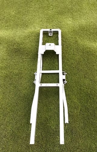 Herramienta para desmontar ruedas de moto de enduro. - Estructura metálica resistente. - Mango de agarre cubierto. - Base estable.