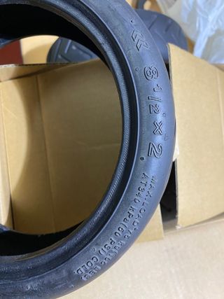 Se venden 4 ruedas de 8” para patinete Xiaomi M365 o similares. 1 completamente nueva y las otras 3 con muy poco uso. Solo neumáticos, sin cámara.