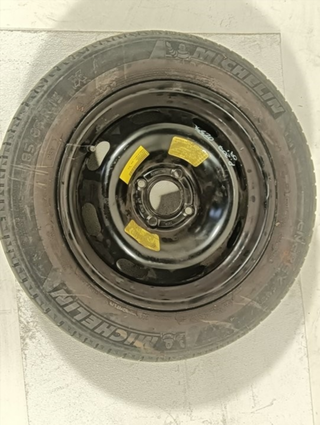 Rueda de repuesto de marca Michelin para coche. - Llanta de acero. - Neumático en buen estado. El neumático no se ha usado nunca, está nuevo. Lo vendo porque nunca he tenido que usarlo y estoy falto de espacio. Las medidas de pueden ver en las fotos. Era para un Citroen C4 grand picasso, pero puede usarse en cualquier otro modelo que monte esas medidas.