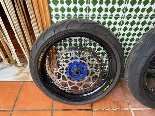 ‼️nuevas a estrenar ‼️ ruedas completa con soporte de pinza para husqbarna, ktm y gas gas del año (2016 a 2021) llegar y montar