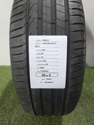 Neumáticos 245/50 R19 105W Pirelli Cinturato p7 al 90% de vida útil FOTOS REALES Precios por unidad IVA incluido. Montaje y equilibrado 10€. Se vende por parejas. Envíos en 24/48h + 15€ unidad 912791315 #EMPORIORUEDA #TALLER #SANMARTINDELAVEGA #USADAS #SEMINUEVAS #SEGUNDAMANO #OCASION 155/80R13 175/70R13 165/65R14 175/65R14 185/65R14 185/55R15 185/65R15 195/65R15 205/65R15 205/55R16 215/55R16 225/55R16 205/50R17 215/45R17 225/45R17 225/40R18 235/40R18 245/40R18 225/45R19 235/35R19 255/30R19 255/50R19 275/35R20 275/40R20 315/35R20 295/35R21 195/70R15C 225/65R16C