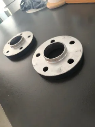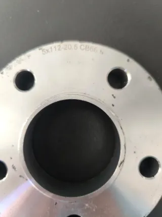 Separadores para llantas de Mercedes. - 2 separadores para Mercedes de 20mm. Sirven para modelos hasta 2005. Estaban puestos en un Mercedes CLK 2003 para que pudiera acoplar llantas de otro Mercedes más moderno (2010). - Cuestan nuevos 110€. - Material: Aluminio.