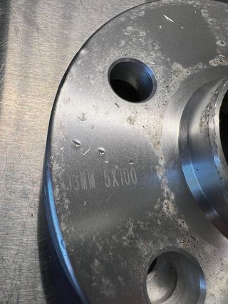 Separadores de rueda de 13 mm con un patrón de pernos de 5x100. - Material: Aluminio. - Grosor: 13 mm. - Patrón de pernos: 5x100. - Viene con los 5 tornillos.
