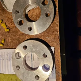 Se venden dos separadores de rueda de 20mm. - Material metálico. - Diámetro interior y exterior visibles en las imágenes. - Agujeros para tornillos 5x100 - Sucios pero en buen estado
