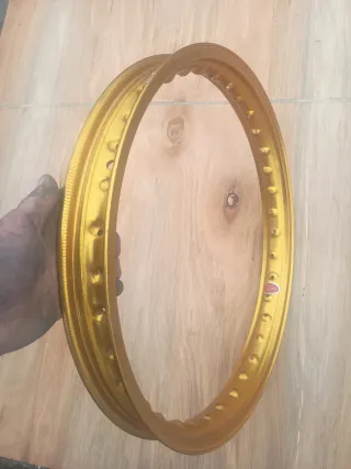 Llanta de moto Akront en color dorado. Medidas en las fotografías - Medida 19 x 1.60. - Fabricada en España. Tengo más unidades