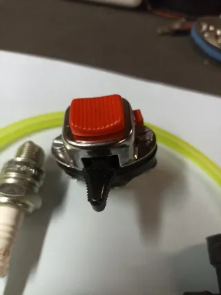 Kit de repuestos para motos clásicas, ideal para mantenimiento. Conmutador manillar - Filtro de combustible transparente. - Bujía champion - Tubo de gasolina amarillo. -pipa de bujía en L.