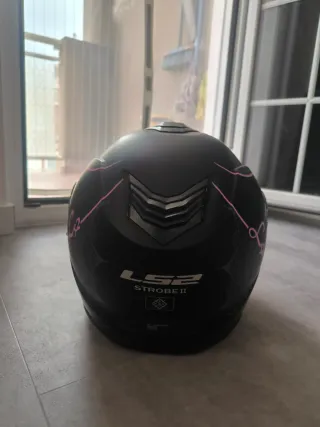 Casco de moto LS2 Strobe II, modelo Lady, en talla S. No ha sido usado nunca. Diseñado para ofrecer protección y comodidad. - Modular - Con gafas de sol - Funda casco incluida - Color negro mate con detalles en rosa. - Visera transparente. - Interior confortable. Precio negociable