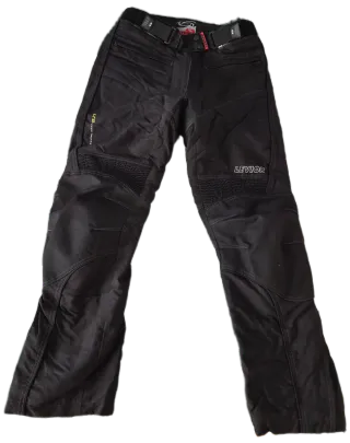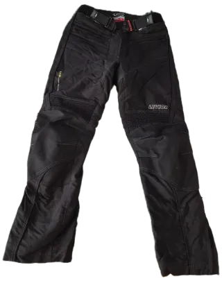 Pantalón de moto Levior diseñado para rutas y viajes. - Confeccionado en tejido de cordura resistente, color negro. - Estilo touring para mayor comodidad. - Color negro. - Talla 38-40. Talla L.