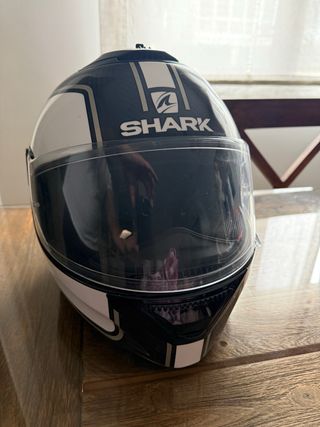 Casco de moto de la marca Shark con diseño en negro y blanco. - Visera transparente. - Diseño deportivo.