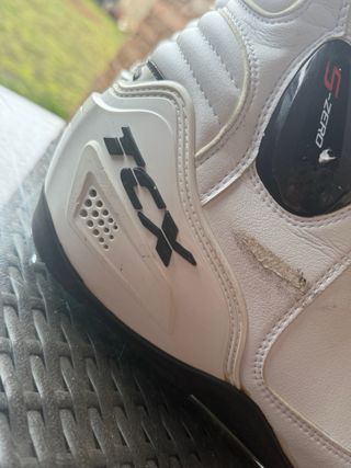 Botas de moto TCX de carretera en color blanco. Diseñadas para ofrecer protección y comodidad. - Marca: TCX - Estilo: Carretera - Color: Blanco - Cierre con cremallera y velcro - Protecciones integradas Una de ellas está algo marcada de pilotar en un circuito.