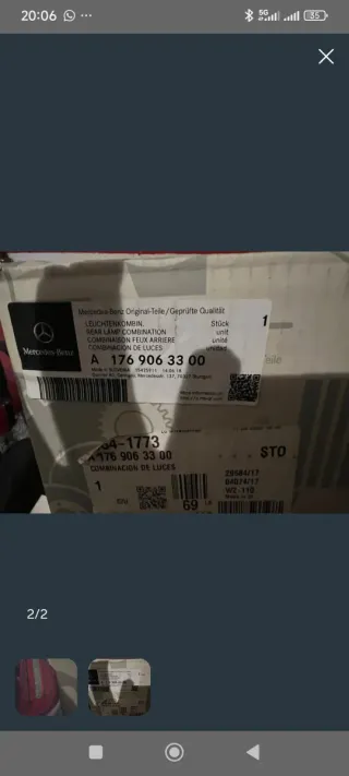 Faro trasero izquierdo original Mercedes-Benz para Clase A W176. - Referencia: A 176 906 33 00 - Fabricado en Eslovenia. - Fecha de fabricación: 14.06.18