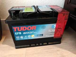 Batería NUEVA, SIN USAR, de coche Tudor EFB con tecnología Enhanced Flooded Battery. Para primeros coches con tecnología star stop. SE OFRECE ENTREGA Y MONTAJE A DOMICILIO. - Capacidad: 70 Ah. - Modelo: TL700. - Potencia de arranque en frío (EN): 760 A. - Dimensiones: 278 mm (largo) x 175 mm (ancho) x 190 mm (alto). - Precintada sin usar Se compró para Peugeot 2008 1.2 puretech pero no se llegó a montar. Válida para otros modelos, Peugeot 208. Audi A3, BMW serie 1, BMW serie 3, mercedes clase c, Nissan Qashqai, Volkswagen polo, golf, Tiguan, passat. Tecnología EFB anterior a AGM, si tu coche lleva AGM esta batería no es válida.