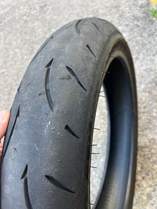 Se vende Juego de neumáticos Dunlop 212 gp racer compuesto M ( los dos ) . Medidas 120/70/17 y 180/55/17 con fecha 2/7/21 ambos . Usados por único propietario solo en circuito , aun tienen bastante vida tanto para calle como para circuito. Se venden porque uso sliks .