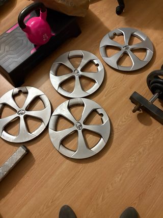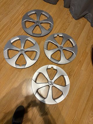 Son cuatro tapacubos sin ningun roze ni arañazo. estan perfectos como sepuede ver en las fotos. son para cualquier prius 3g y la referencia es 42602-47060. el precio en toyota es mas de 60 cada uno, unos 250 euros los 4. en una plataforma de venta online 220 euros. no bajo precio. tags: oferta liquidacion regalo se regala saldo rebajas
