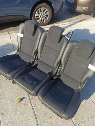 Se venden tres asientos traseros de Renault Grand Scenic III Dinamique. Están en buen estado y son de color negro. - Tres asientos traseros. - Color negro. - Tapicería de cuero y tela. - Incluyen reposacabezas. El precio son 80 euros cada uno o 200 los tres juntos.